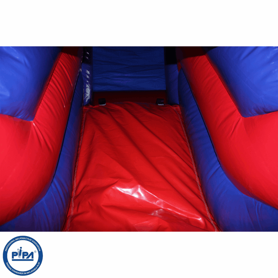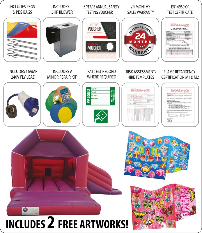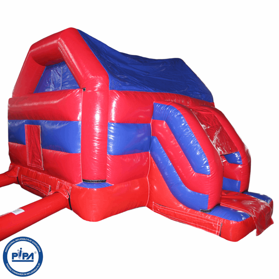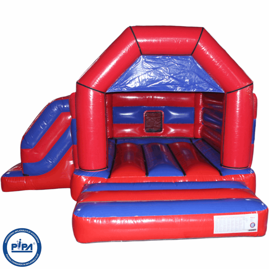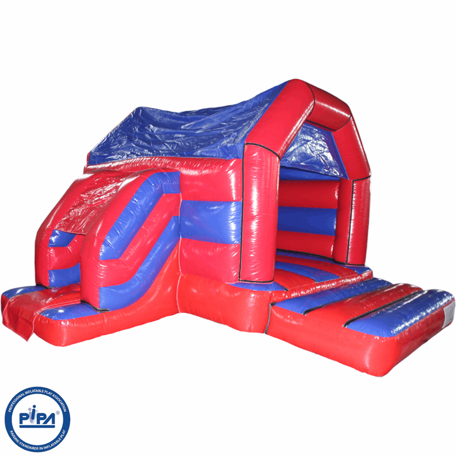 The 15ft x 16ft Bouncy castle with slide is a fantastic new addition that can be added to your fleet. The bouncy castle with slide combines 2 of the most popular items in one extraordinary inflatable where space is at a premium. The bouncy castle with slide combo is the perfect combination slide for any party, venue or occasion and is ideal for all age groups. This brightly coloured piece of equipment provides the perfect bouncing area to bounce along with friends, whilst the slide provides entertainment for the rest of the guests at the same time and certainly won't break the bank.
