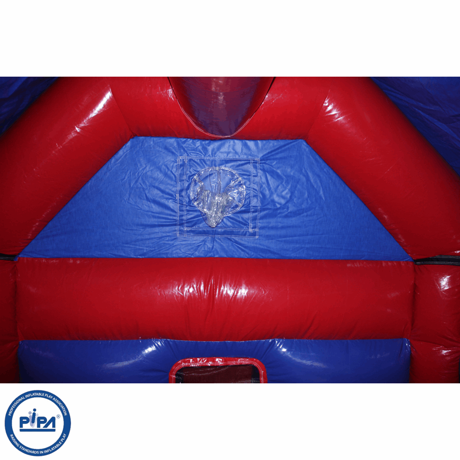 The disco ready inflatable comes complete with speaker holding system and light holder pocked with easy access for cable management if required (Not supplied) The speaker pocket is located in a position that is well protected and hidden away from small fingers yet still bellows the sound out into the inflatable.