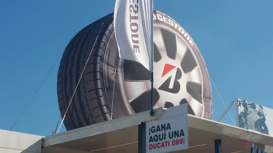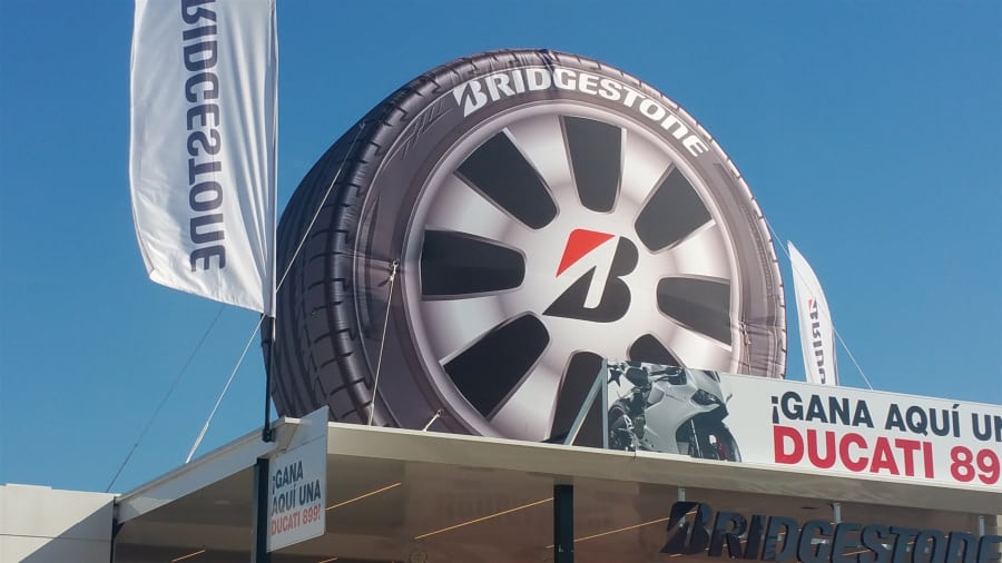 This is one of our inflatable advertising props designed to fit snugly onto the roof of one of the Bridgestone race team trucks to attract attention at various meets across the world. It was last spotted at the Valencia MotoGP in 2019 after 5 years on the road, still looking as fresh as ever.