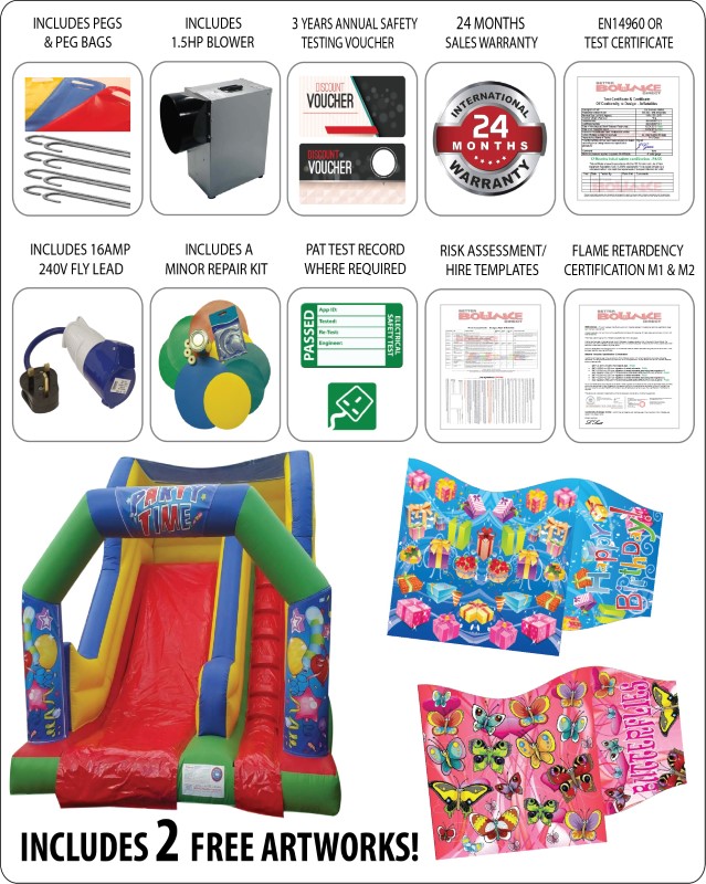 The slide is a brilliant attraction and a really good way to draw visitors to your event, fete, fair, school gala, pub, club, shopping centre or simply for a bit of light-hearted fun at a private party event or birthday bash. Quickly inflated, This item will provide hours of fun for many events & its new inflatable design ensures its accessible to all locations including indoors.