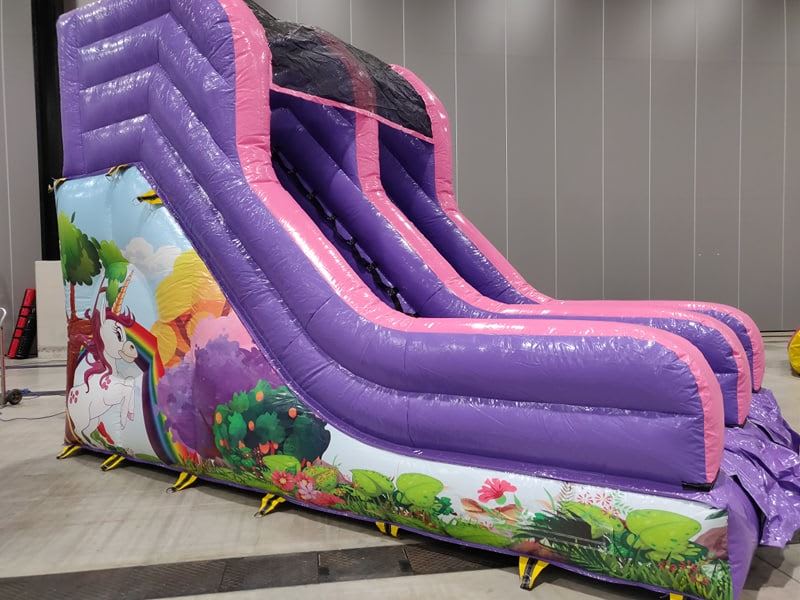 The inflatable slide offers features such as firm step holds and a netted roof to stop over adventurous children from climbing out ensuring maximum safety. The inflatable slide for sale is perfect for entertaining a birthday party of around 15 children at any one time (not all at once of course) and is a really good slide choice is your planning a small school gala or summer fete where the smaller age range needs to be catered for. We also have a matching range of soft play and other inflatables if you really want to go all out.