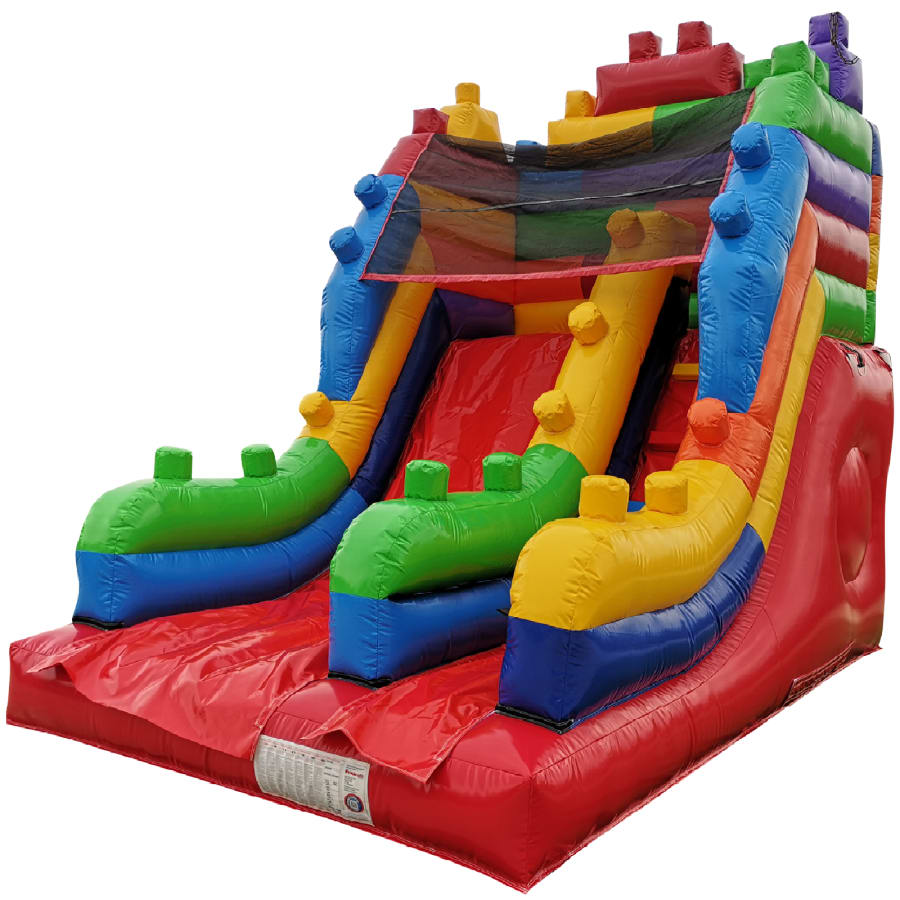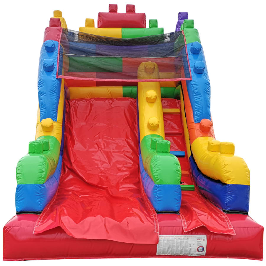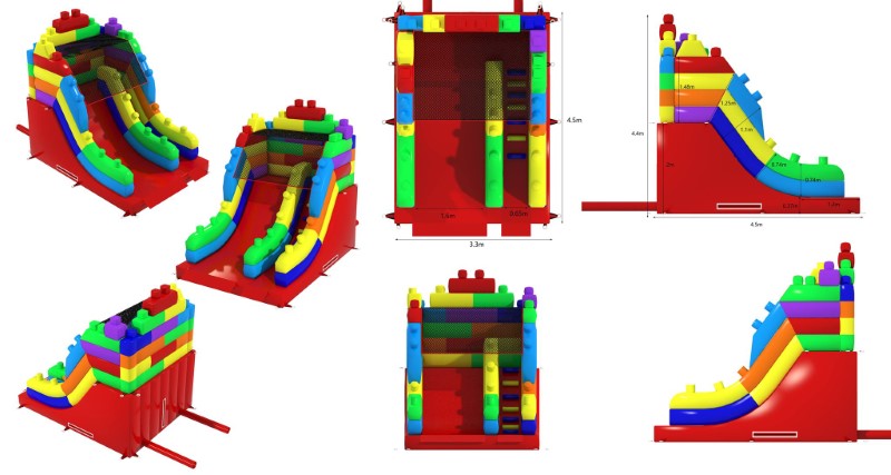 The side comes complete with detachable steps and slip sheet is a real head turner for the kids.the inflatable slide comes with with detachable foam block steps, detachable slip sheet, light weight netted slide canopy. The slides roof features a special viewing tower for the little ones to get excited over and despite this, only measures at a modest 11ft yet making it perfect for indoor hire. The Bright theme really is amazing and give an extra vibrant feel to all other items in its class.