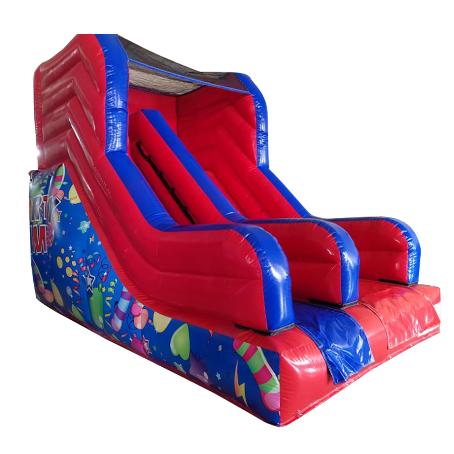 The inflatable slide offers features such as firm step holds and a netted roof to stop over adventurous children from climbing out ensuring maximum safety. The inflatable slide for sale is perfect for entertaining a birthday party of around 15 children at any one time (not all at once of course) and is a really good slide choice is your planning a small school gala or summer fete where the smaller age range needs to be catered for. We also have a matching range of soft play and other inflatables if you really want to go all out.