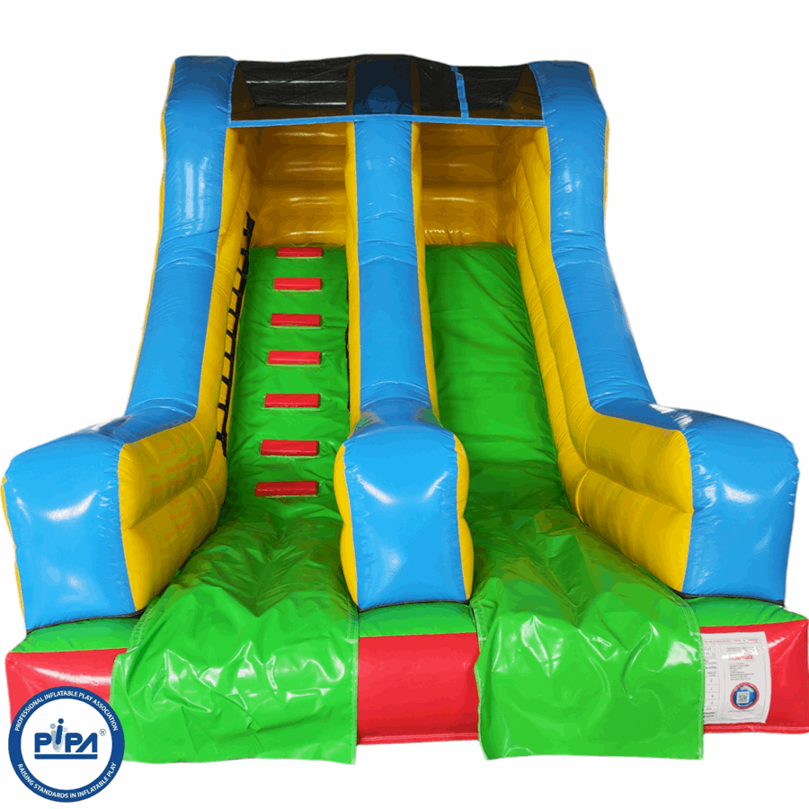 The 8ft platform slide is the perfect intermediate slide for any party, venue or occasion. The children using this slide just love the fact that it's big, bright and bold and gives them a real grown-up feel on their special day. The slide measures 14ft yet is perfect for both indoor and outdoor hire. The colour theme is very bright and absolutely fantastic, ensuring this inflatable slide is perfect to make their big day be everything they dreamed of.