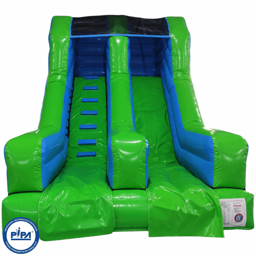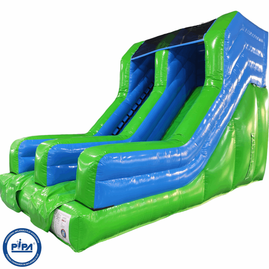 The 8ft platform slide is the perfect intermediate slide for any party, venue or occasion. The children using this slide just love the fact that it's big, bright and bold and gives them a real grown-up feel on their special day. The slide measures 14ft yet is perfect for both indoor and outdoor hire. The colour theme is very bright and absolutely fantastic, ensuring this inflatable slide is perfect to make their big day be everything they dreamed of.