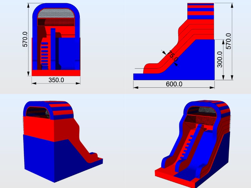 Its a perfect compromise between the back garden hire slides and the school gala style and is right on budget to achieve a good hire price.The slide comes complete with detachable foam block steps and slip sheet and can be manufactured in a range of colours to suit all clients.