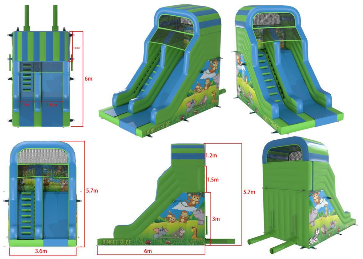 Its a perfect compromise between the back garden hire slides and the school gala style and is right on budget to achieve a good hire price.The slide comes complete with detachable foam block steps and slip sheet and can be manufactured in a range of colours to suit all clients.