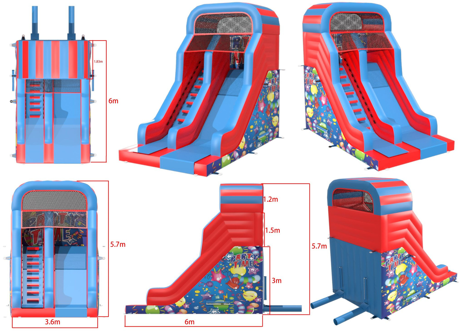 BBOL-100 - 15x10x13ft - 6.5ft platform Super slide - (Red & Light Blue Partytime)