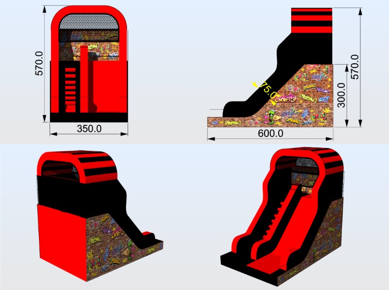 BBOL-133 - 20x12x19ft - 10ft platform Super slide - (Red & Black Graffiti)