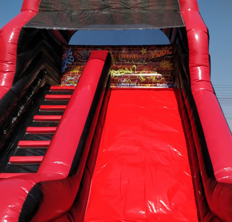 BBOL-037 - 25x15x20ft - Under 12ft platform - MEGA SLIDE - (Red & Black Graffiti)