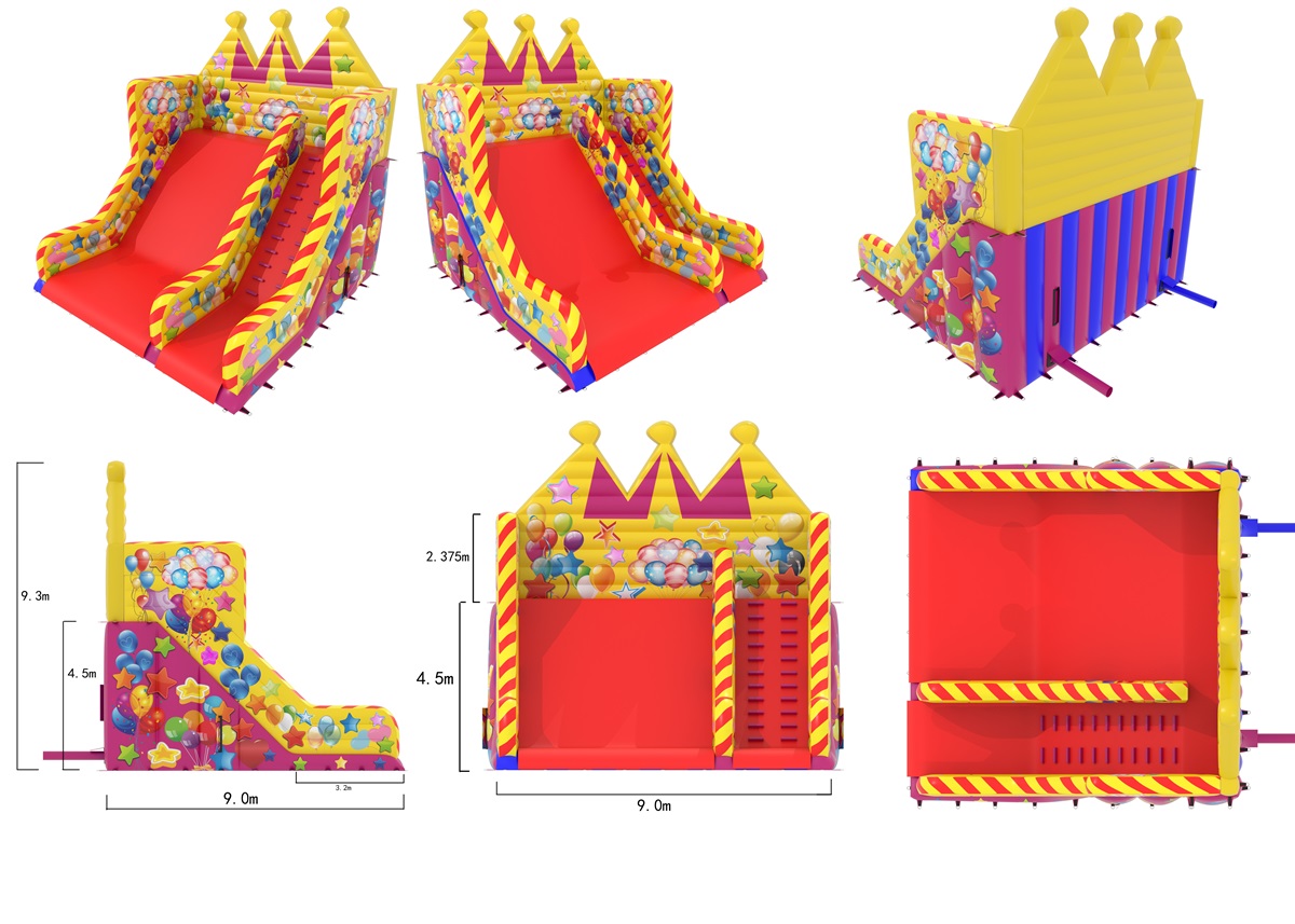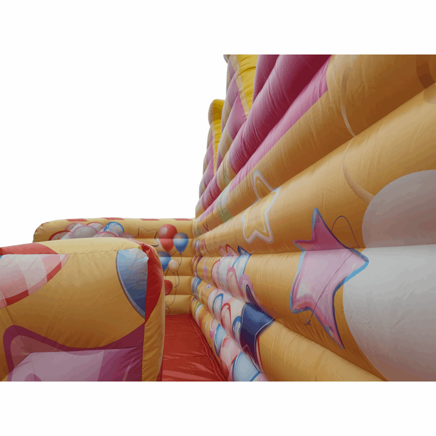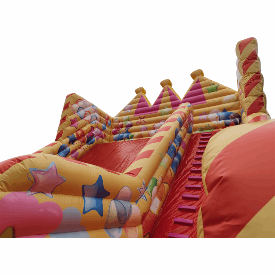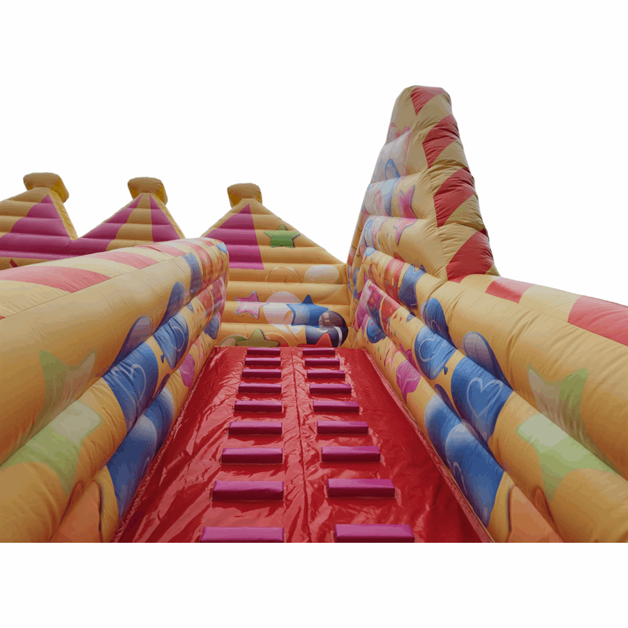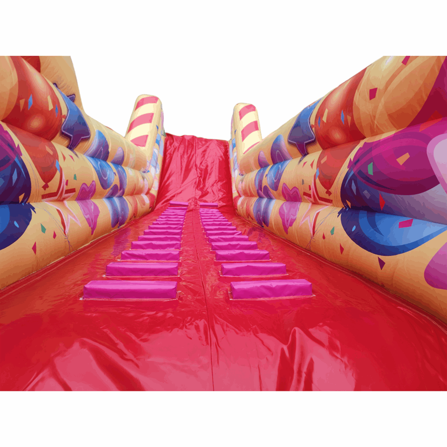 The slide's distinctive double steps design, reminiscent of the iconic Gladiator Travellator, adds a touch of nostalgia and an extra layer of thrill. At the top section, you'll discover dazzling carnival themed artwork.