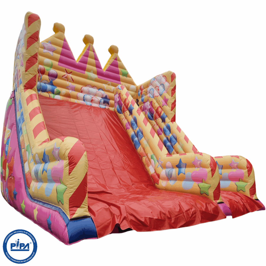 Offering a range of features, including secure step holds, extra handrails, and a netted roof for maximum safety, the Showman's Tradition Slide is suitable for entertaining large groups, making it ideal for major events where you want to provide endless fun and entertainment.