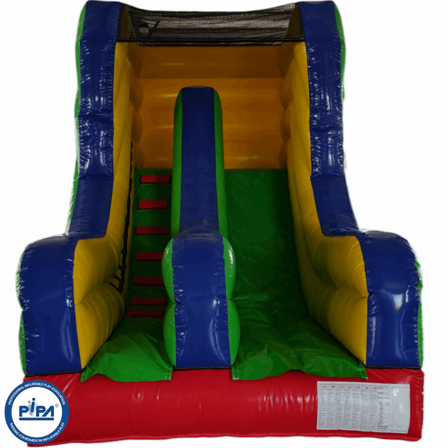The inflatable slide offers features such as firm step holds and a netted roof to stop over adventurous children from climbing out ensuring maximum safety. The inflatable slide for sale is perfect for entertaining a birthday party of around 15 children at any one time (not all at once of course) and is a really good slide choice is your planning a small school gala or summer fete where the smaller age range needs to be catered for. We also have a matching range of soft play and other inflatables if you really want to go all out.
