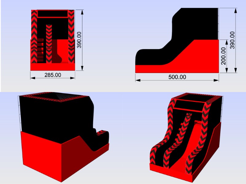 BBOL-100Z-MK1 - 15x10x13ft - 6.5ft platform Super slide - Hyper Slide - (Black & Red Chevrons)