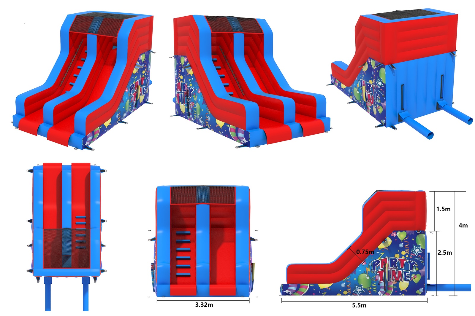 The 8ft platform slide is the perfect intermediate slide for any party, venue or occasion. The children using this slide just love the fact that it's big, bright and bold and gives them a real grown-up feel on their special day. The slide measures 14ft yet is perfect for both indoor and outdoor hire. The colour theme is very bright and absolutely fantastic, ensuring this inflatable slide is perfect to make their big day be everything they dreamed of.