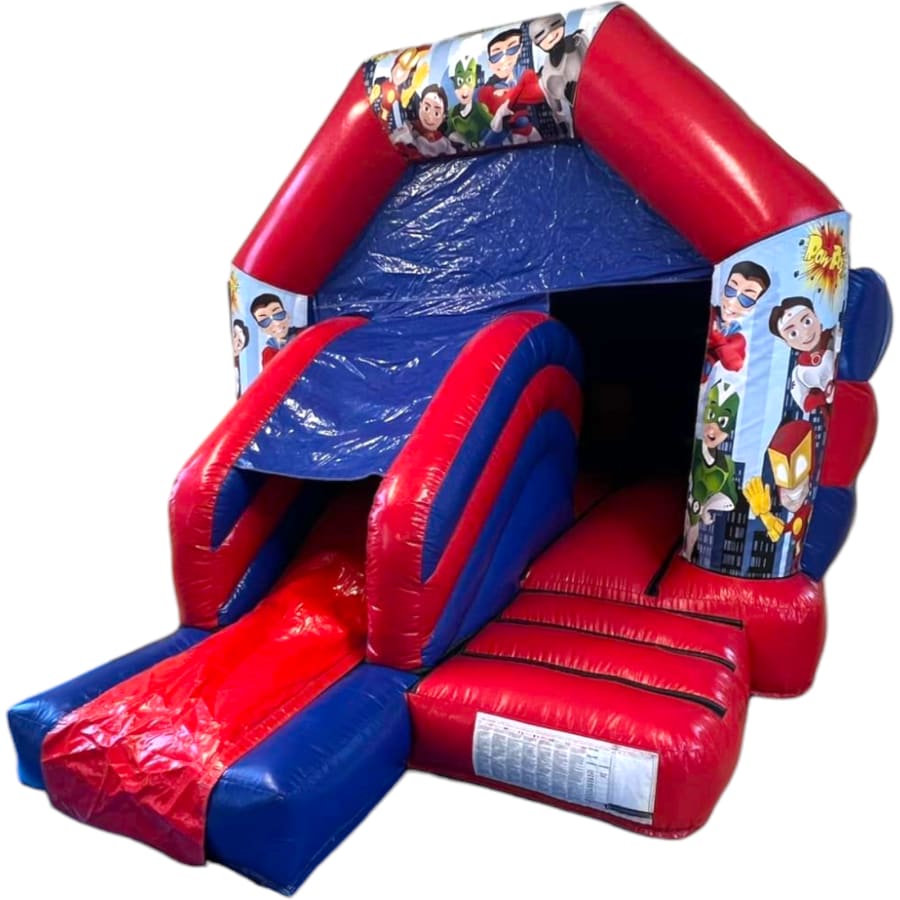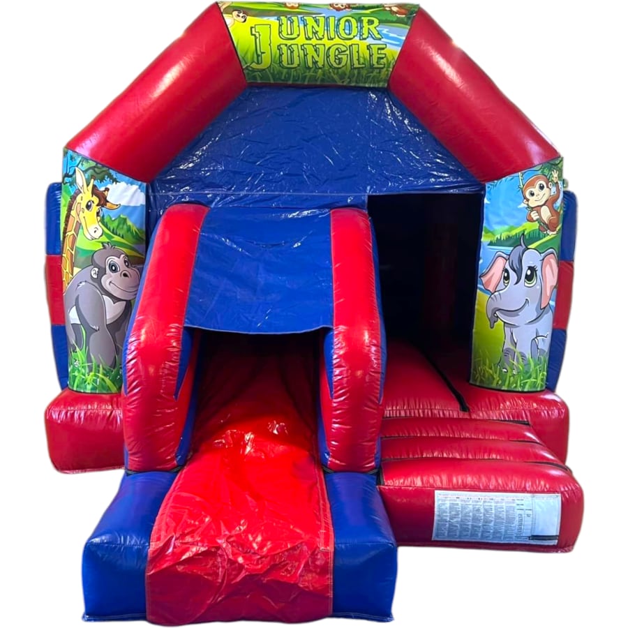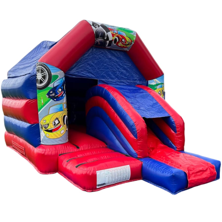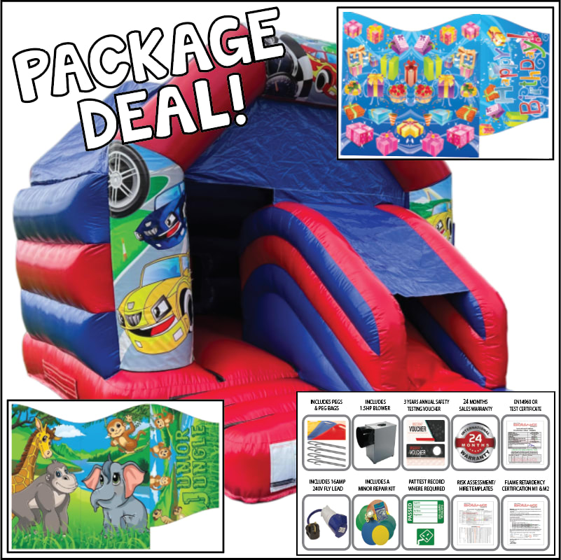 The 11ft x 16ft Bouncy castle with slide is a fantastic new addition that can be added to your fleet. The bouncy castle with slide combines 2 of the most popular items in one extraordinary inflatable where space is at a premium. The bouncy castle with slide combo is the perfect combination slide for any party, venue or occasion and is ideal for all age groups. This brightly coloured piece of equipment provides the perfect bouncing area to bounce along with friends, whilst the slide provides entertainment for the rest of the guests at the same time and certainly won't break the bank.