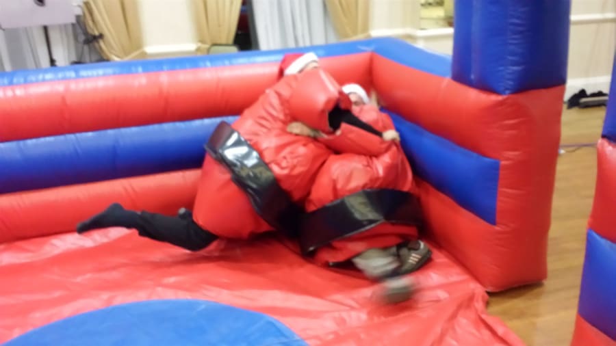 Don't miss out on the opportunity to make this Christmas unforgettable with our Santa-themed Super sumo Suits. Book your suits today and get ready for a jolly and hilarious wrestling extravaganza that will have everyone ho-ho-ho-ing with laughter. Let the holiday festivities begin!