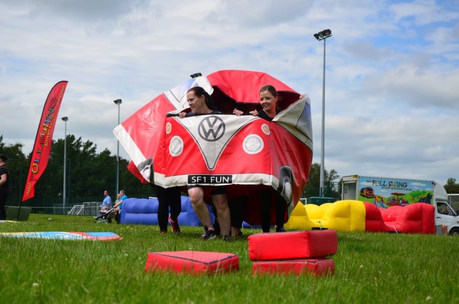 The sumo suits for hire is an Ideal carnival attraction game, team building game, fundraiser and event showstopper and works really well when played as part of a time challenge with potential prizes for those who are able to remain undefeated throughout the event. The Duel is major must have for anyone planning a team building event, corporate gathering, Gala, fun day or it's a knockout inflatable day.