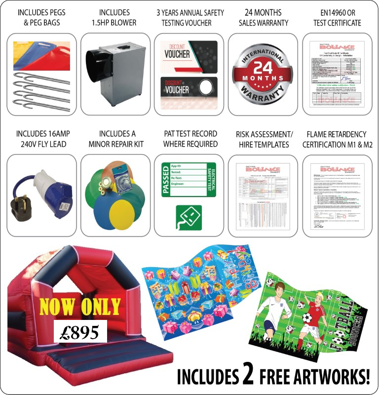 The 11x15ft A frame bouncy castle is the classic icon of British inflatables and is the very foundation for any hire company operating in the UK. The 11x15ft is the perfect size for almost all back gardens and is suitable for indoor use.