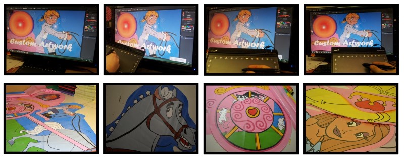 The next stage in the process is to set about designing the artwork. This can either be done by one of our conventional artists or or digital artists depending on your own style. In this case we have made one of each so both artwork types are displayed below. As you can see, all our artwork is up there with some of the best manufacturers in the world.