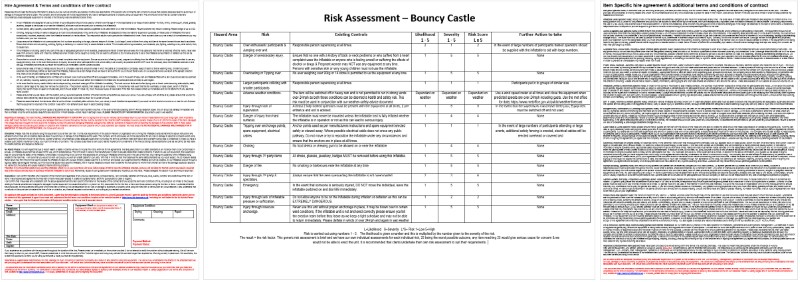 Hire agreement & Risk Assessment template: As part of becoming a Betterbounce customer, We will supply you with a free hire agreement template & Risk assessment to help get you started. (see example below)