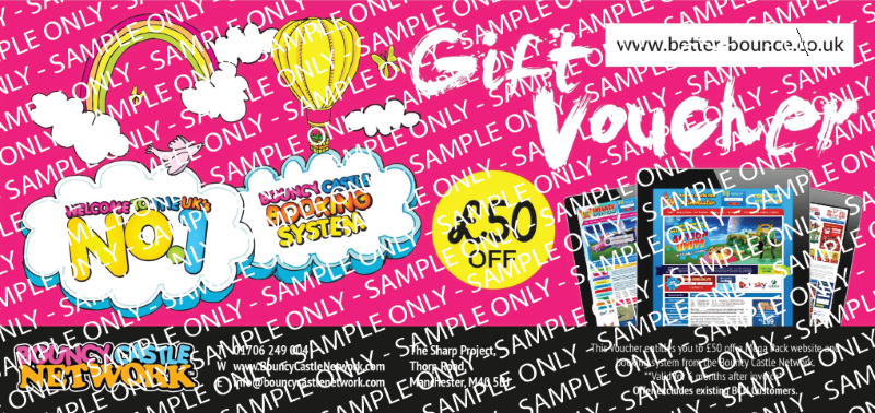 FREE £50 Discount voucher for the bouncy castle network: Simply contact the bouncy castle network and quote the reference number from the voucher below to see what he can do for your business. *new customers only & only valid against top package subscription.